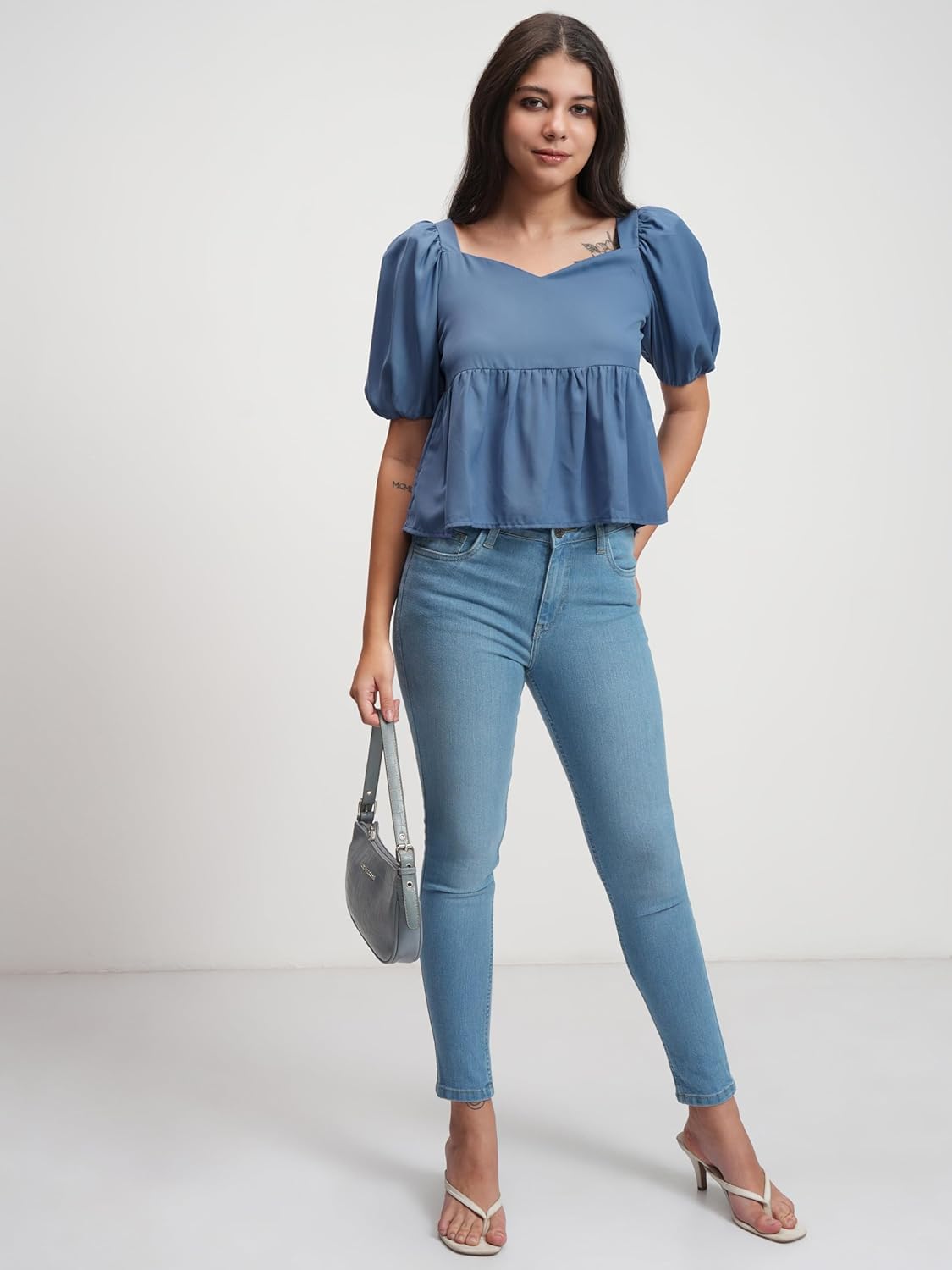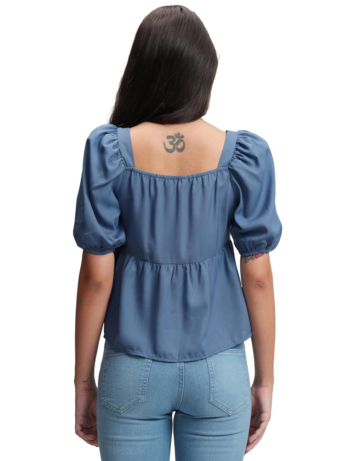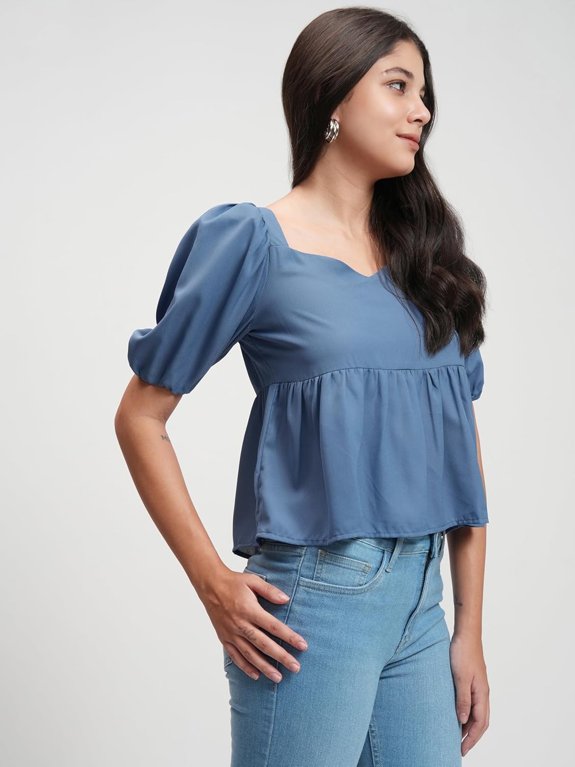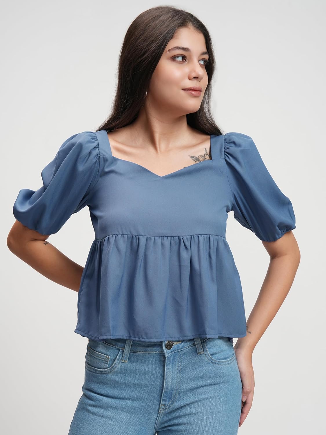Tokyo Talkies Solid Peplum Top | V Neckline & Short Sleeves For A Feminine Look | Tops For Woman | Women Tops