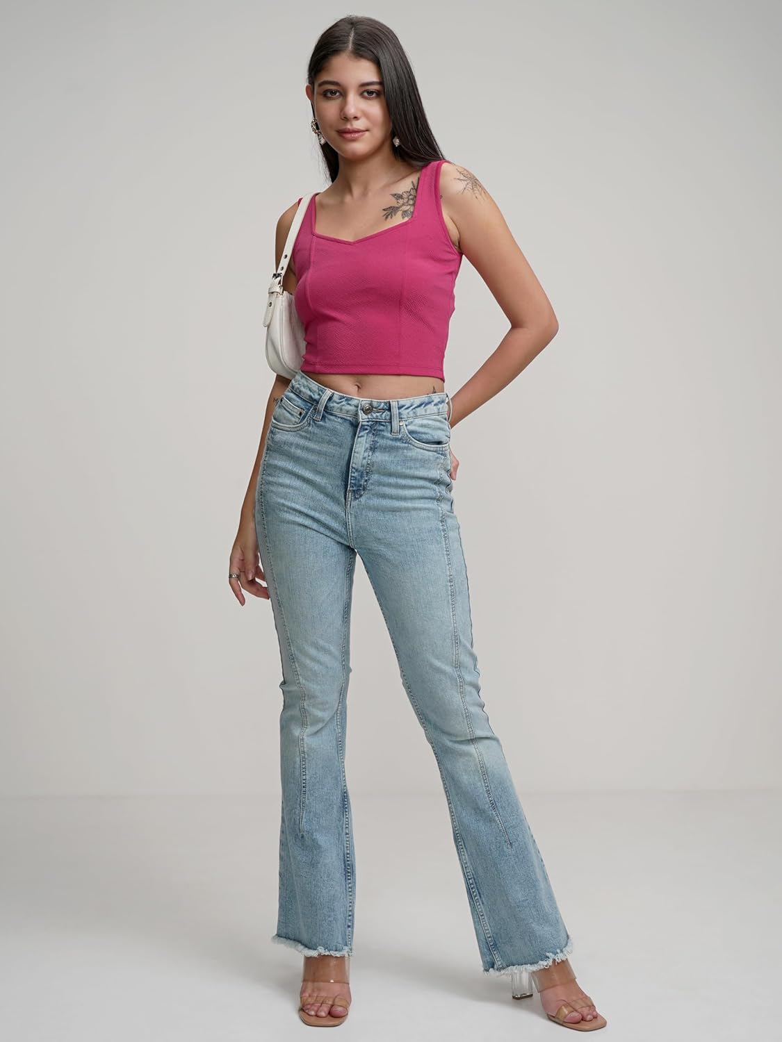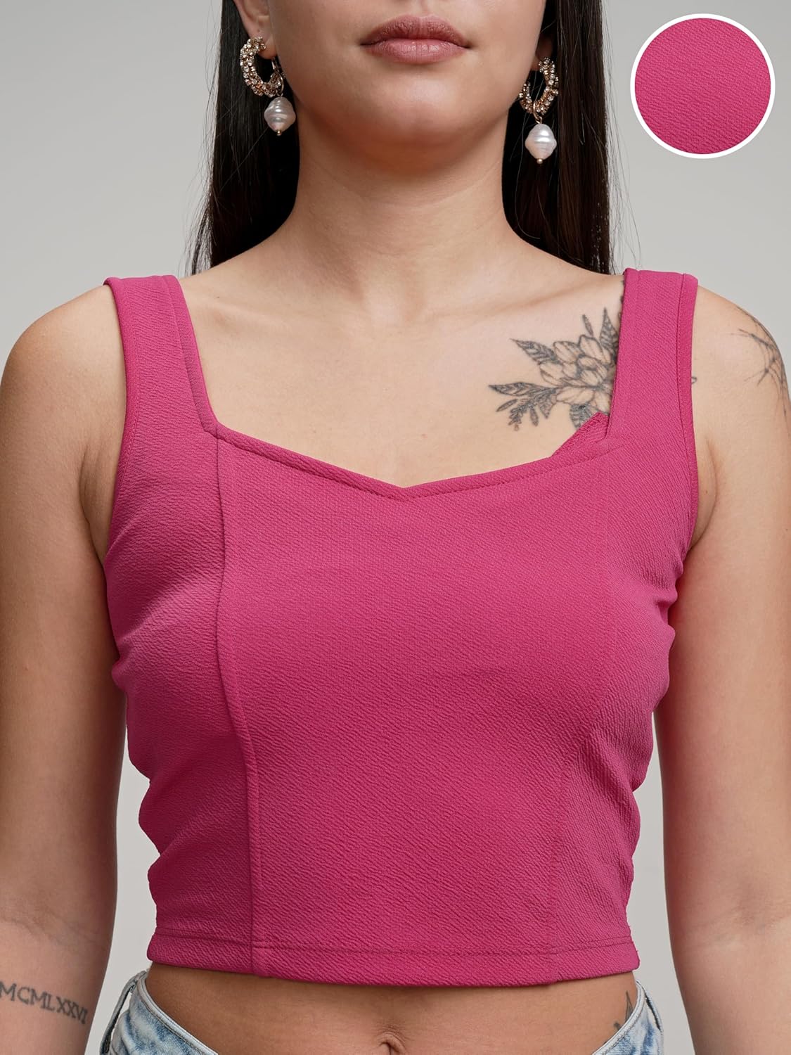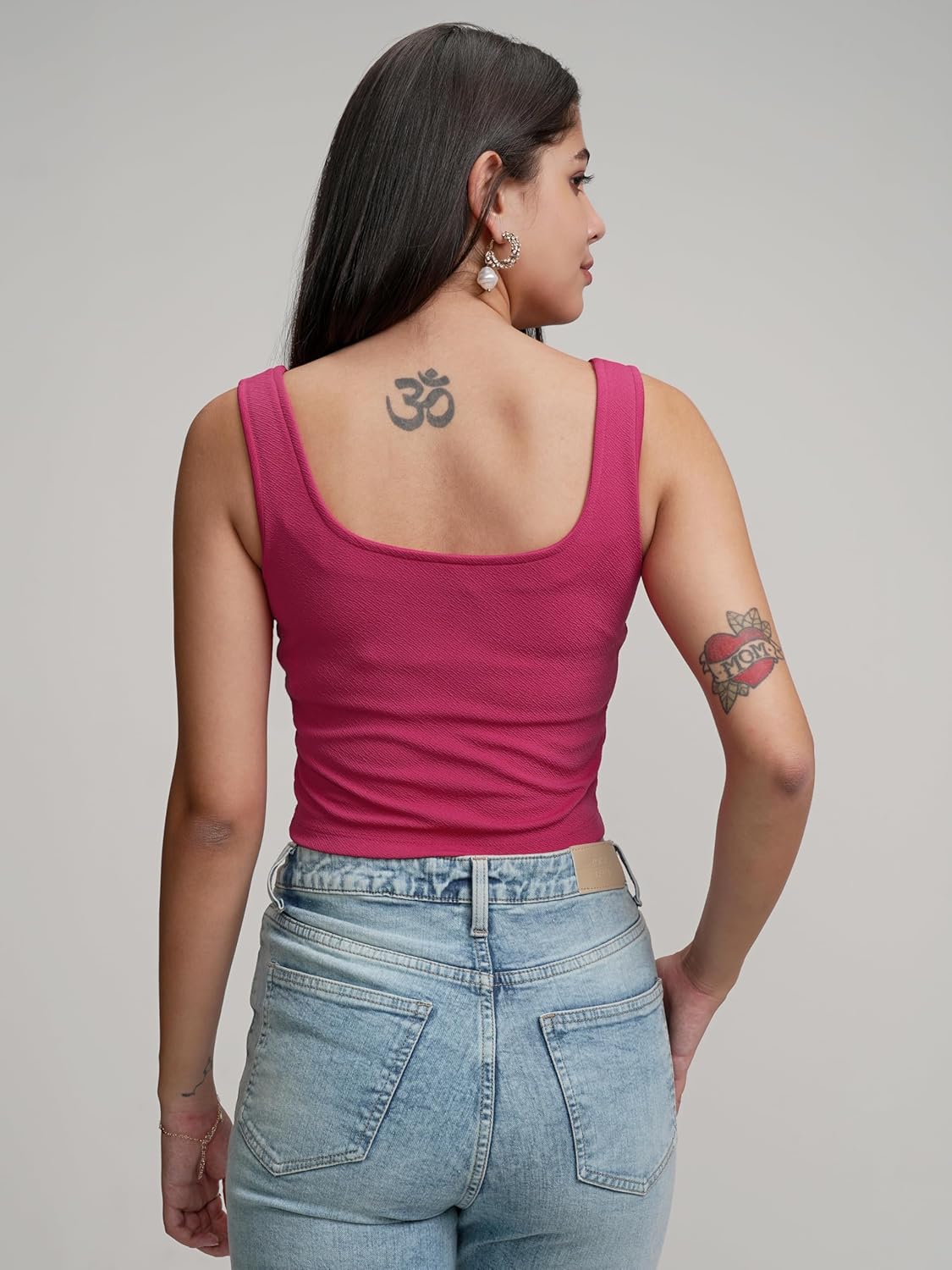 Tokyo Talkies Ribbed Square Neck Fitted Top | Sleeveless & Sleek Design For A Modern Look | Crop Top | Tops For Woman | Women Tops