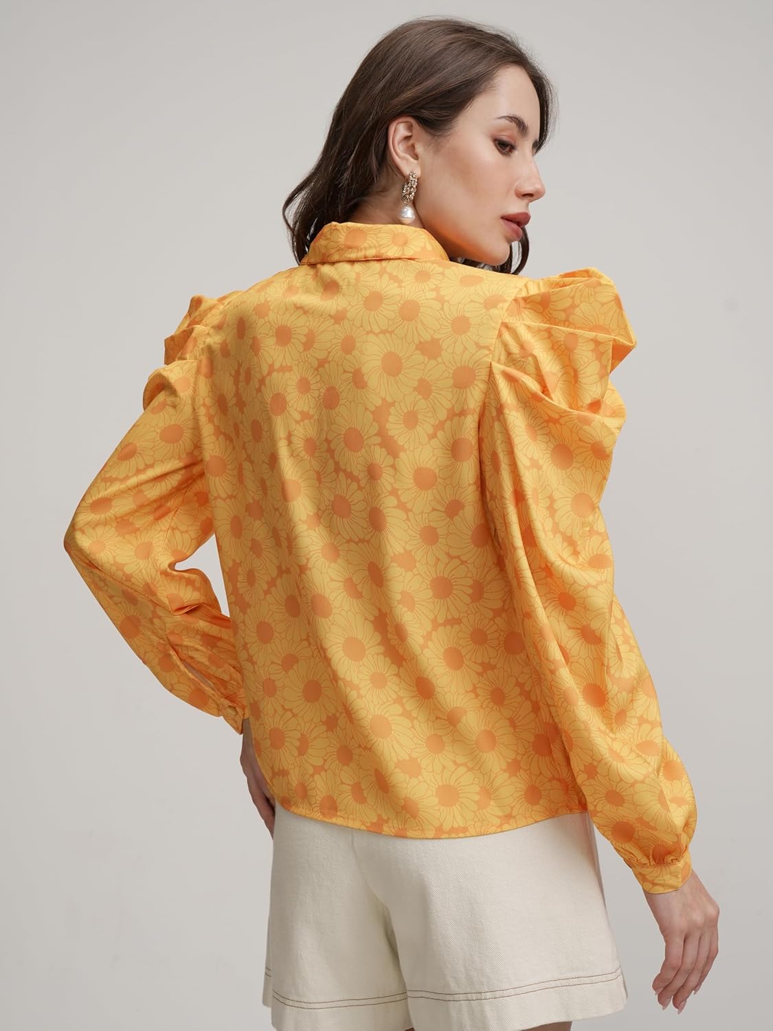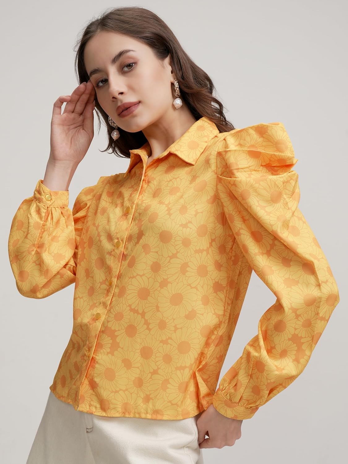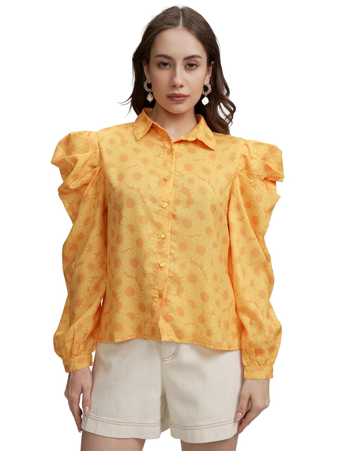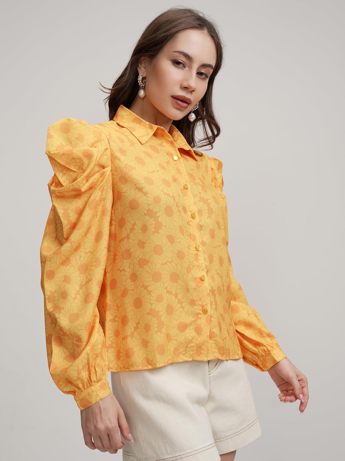 Tokyo Talkies Solid Shirt-Style Top | Button-Down With Balloon Sleeves & Cuffs For A Bold Yet Elegant Look | Floral Print | Tops For Woman | Women Tops