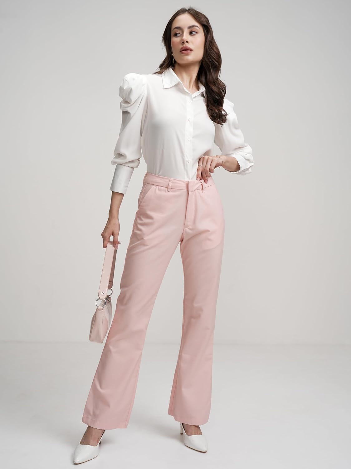 Tokyo Talkies Women’s Solid Shirt-Style Top | Button-Down with Balloon Sleeves & Cuffs for A Bold Yet Elegant Look | Tops for Woman | Women Tops | Stylish Top by Prixsa.com