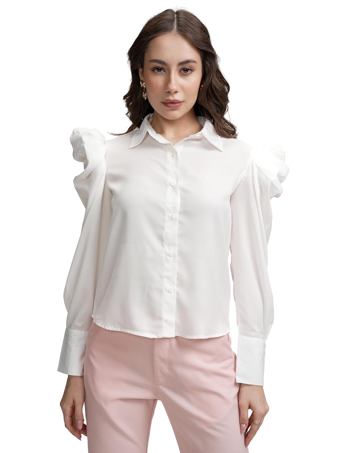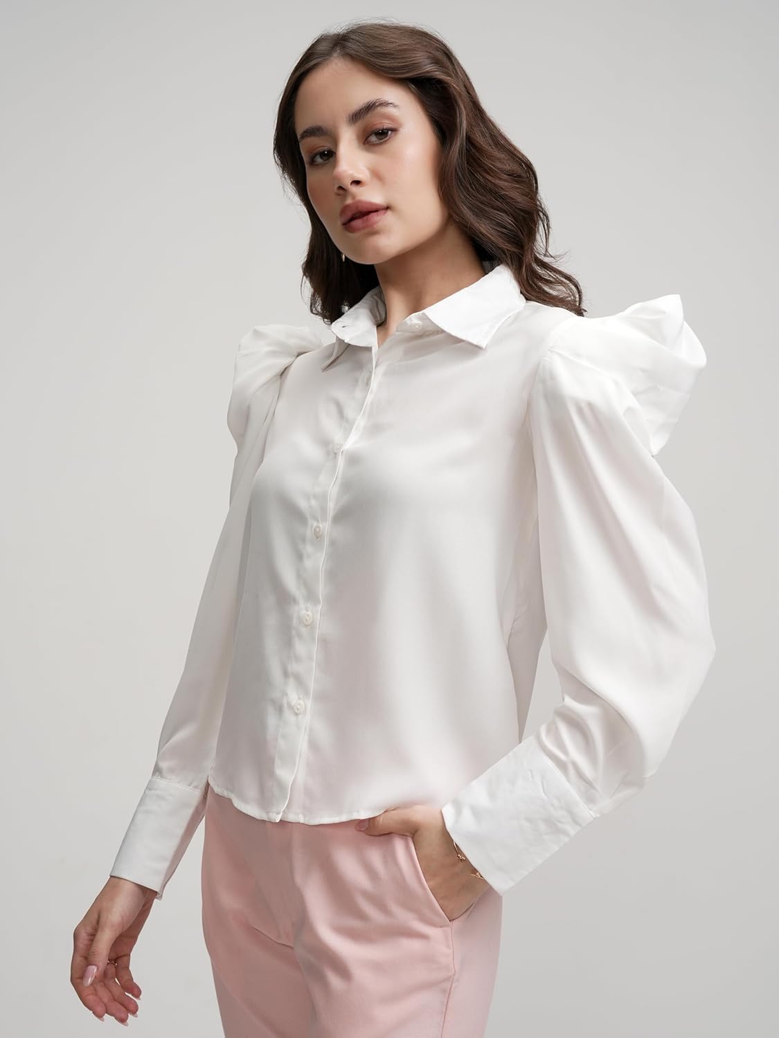 Tokyo Talkies Solid Shirt-Style Top | Button-Down With Balloon Sleeves & Cuffs For A Bold Yet Elegant Look | Tops For Woman | Women Tops