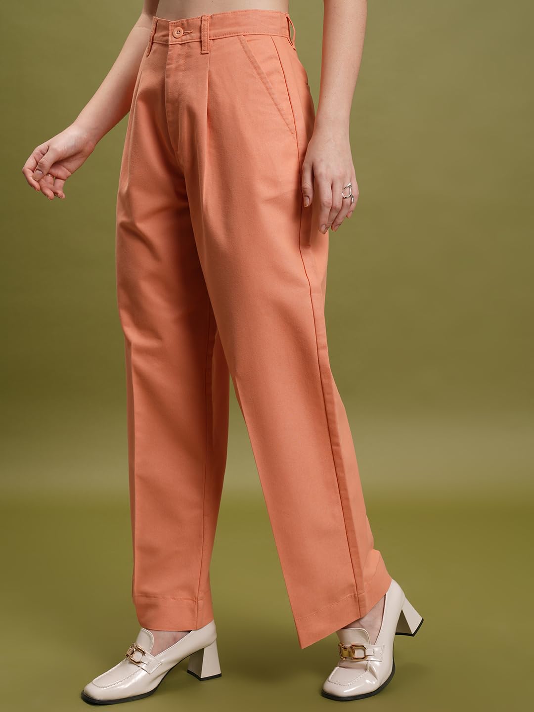 Tokyo Talkies Women Orange-Coloured Straight Fit High-Rise Trouser
