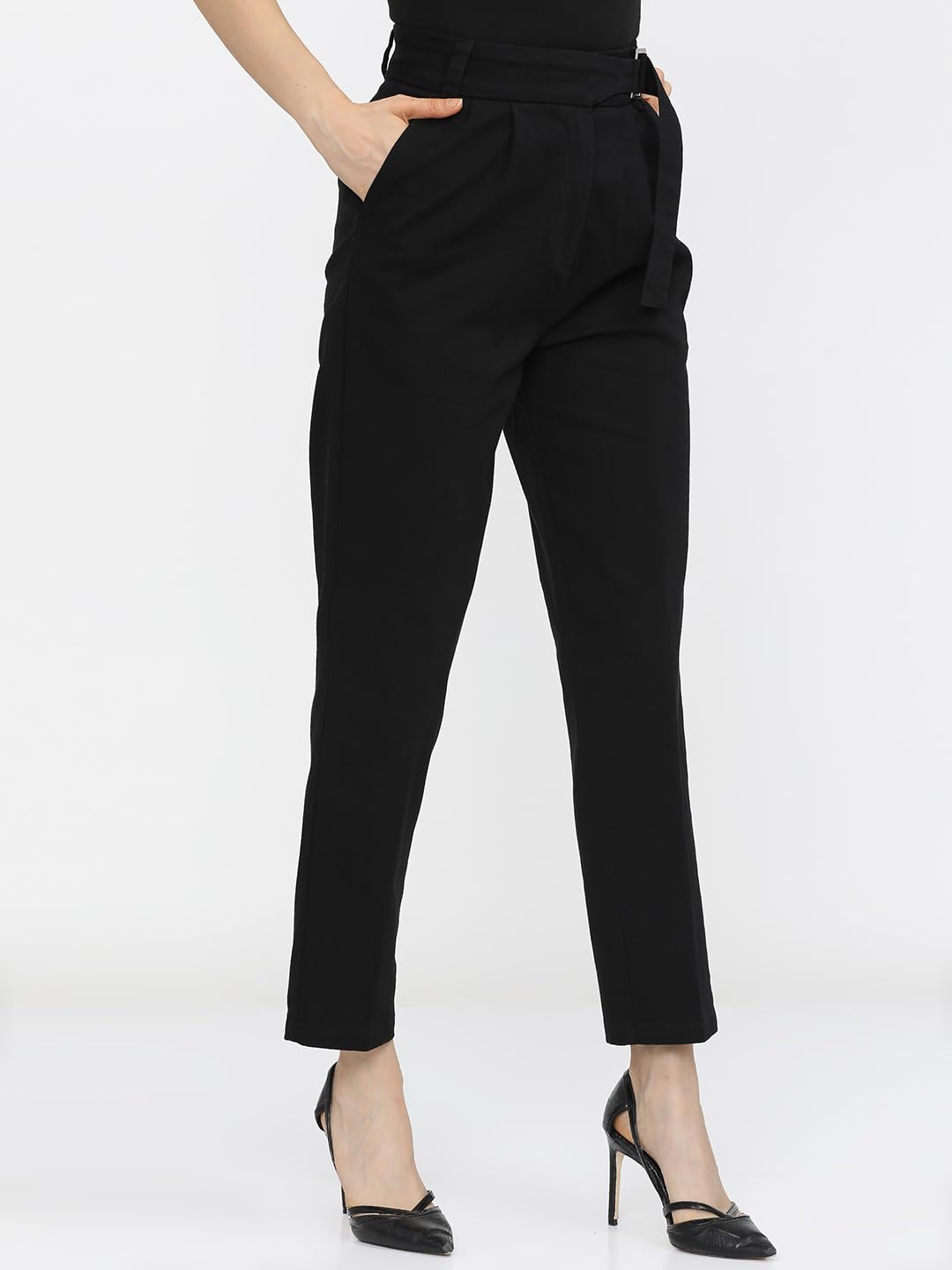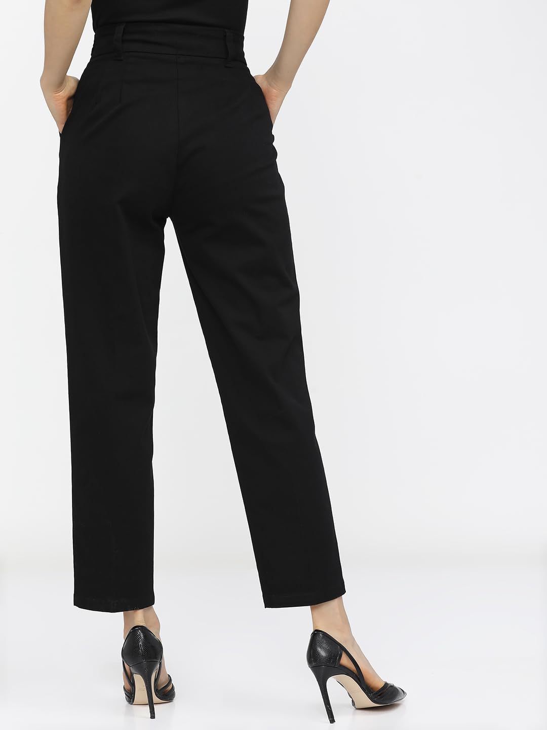 Tokyo Talkies Women Black Tapered Fit Pleated Peg Trousers