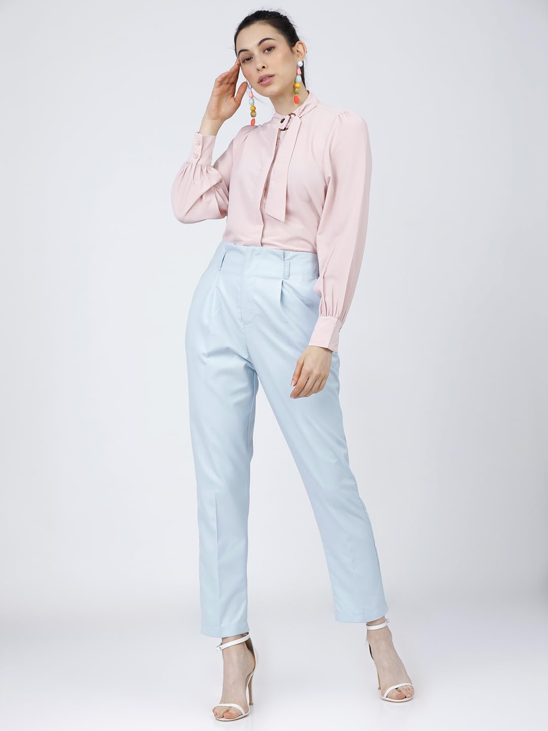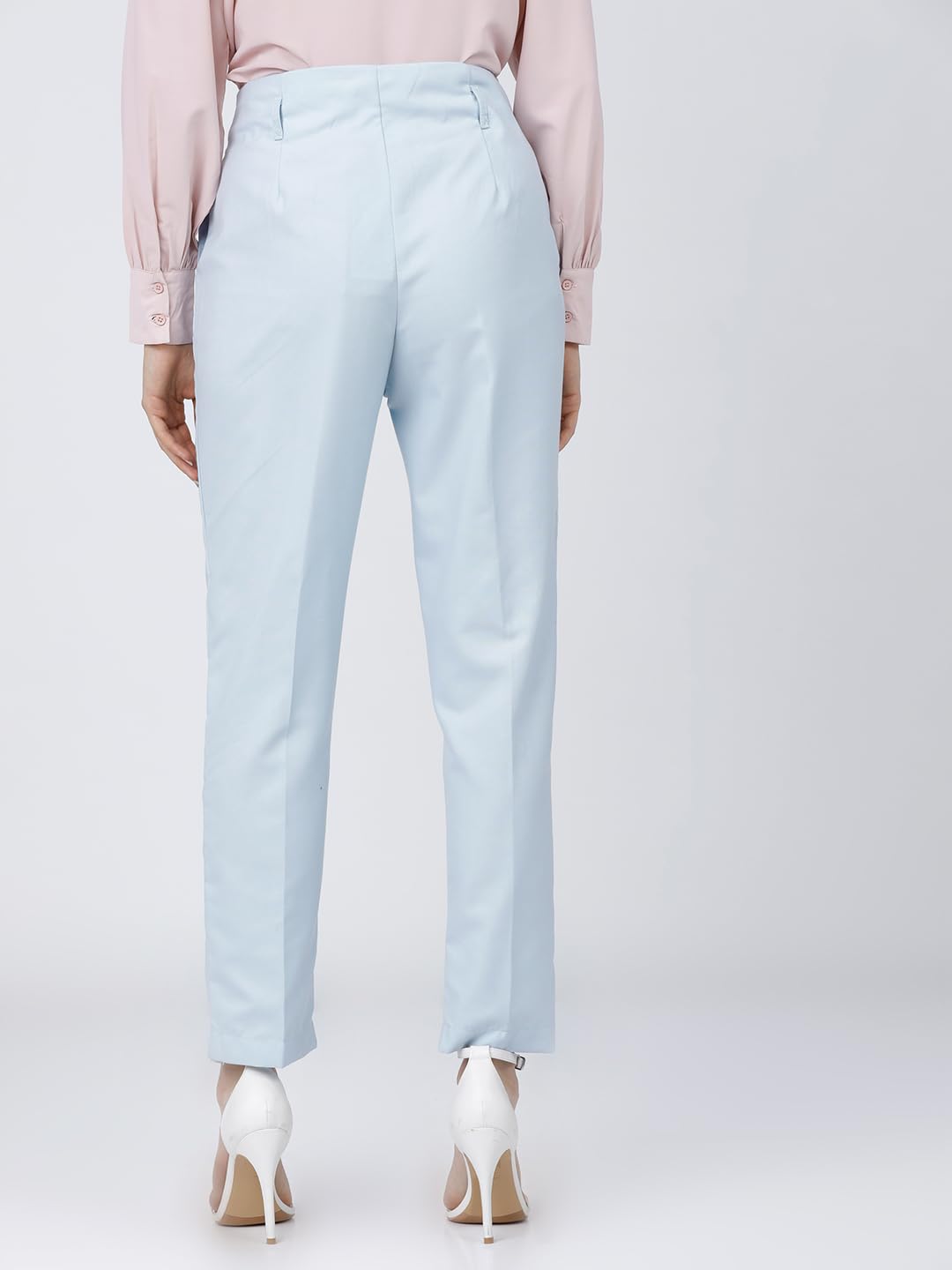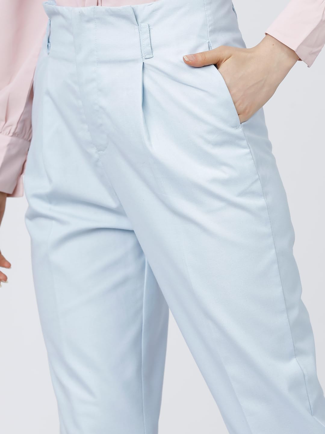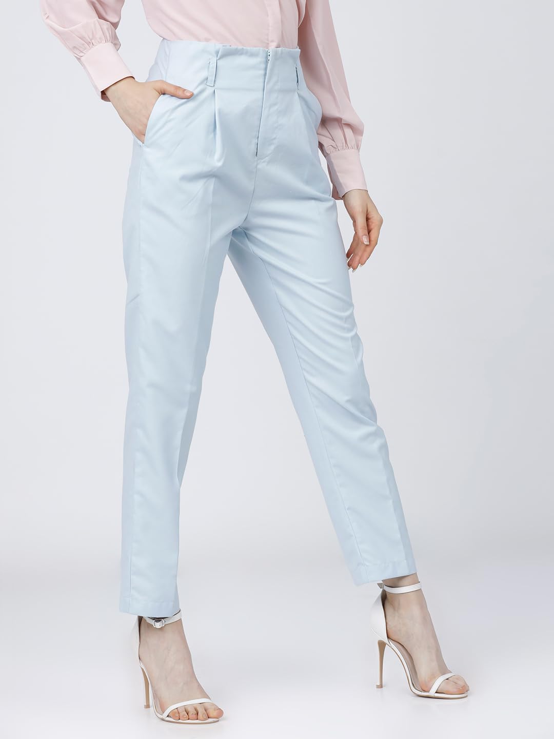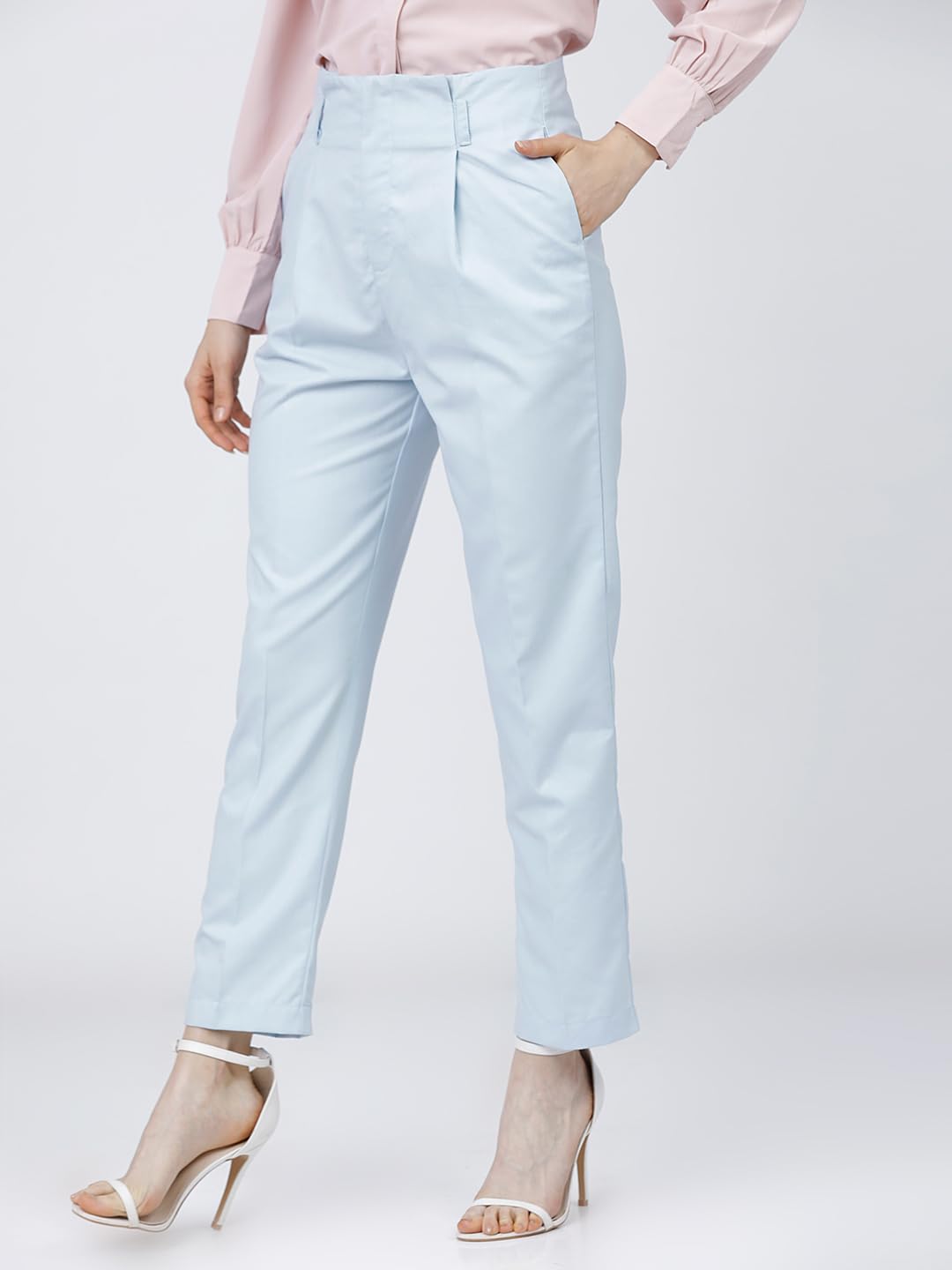 Tokyo Talkies Women Blue Tapered Fit High-Rise Pleated Cigerette Trousers