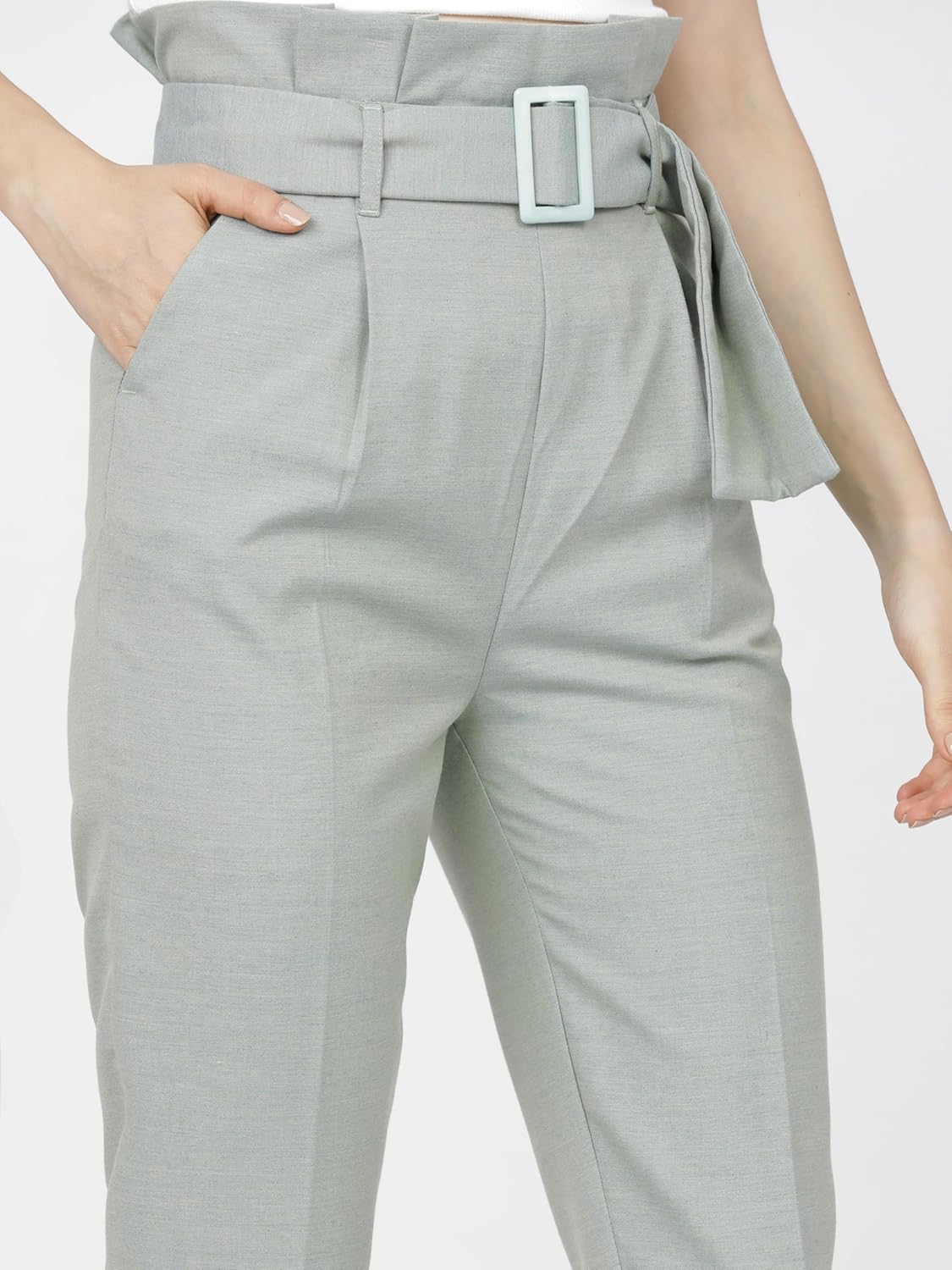 Tokyo Talkies Women Sea Green Tapered Fit Easy Wash Pleated Peg Trousers
