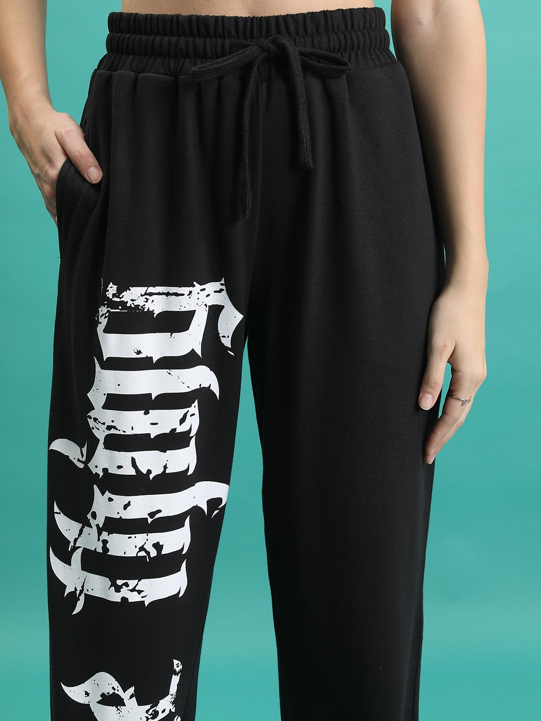 Tokyo Talkies Women Black Loose Fit Mid-Rise Typography Printed Joggers
