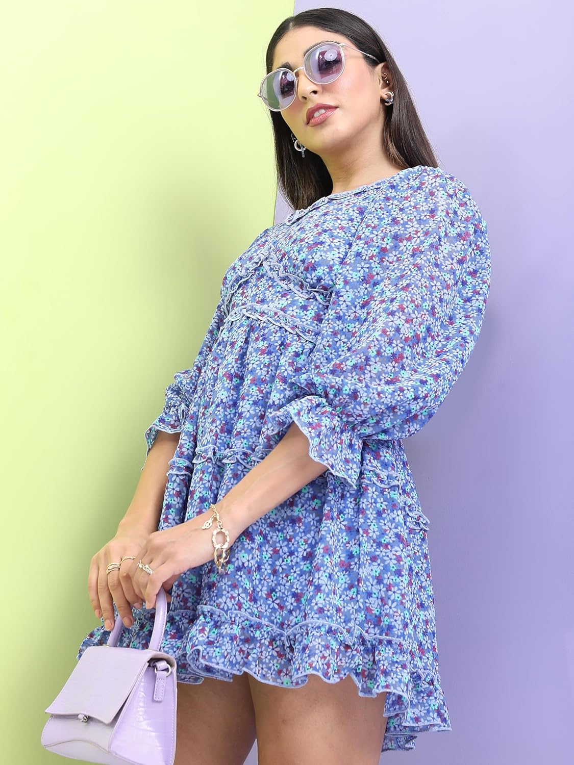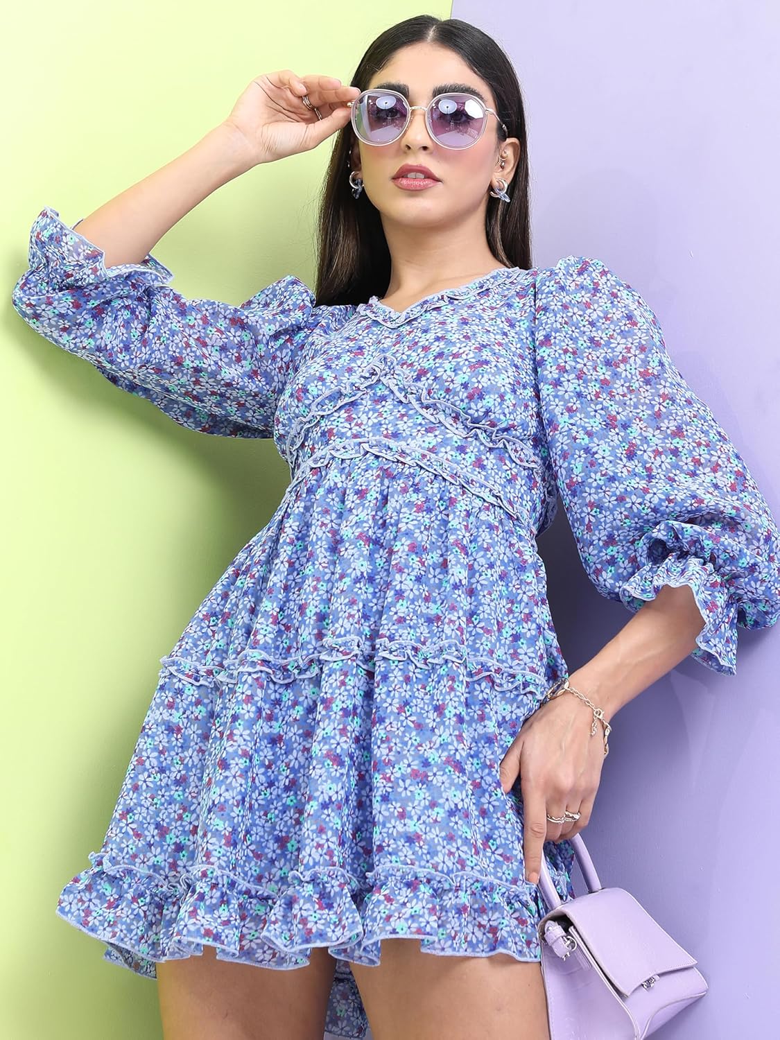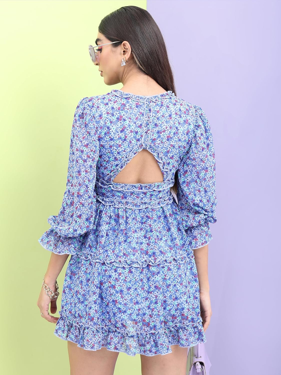 Tokyo Talkies Floral Printed V-Neck Cut-Outs A-Line Dress