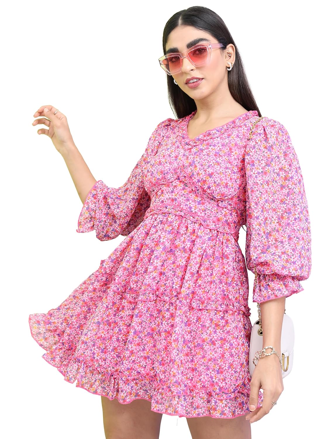 Tokyo Talkies Floral Printed V-Neck Cut-Outs A-Line Dress