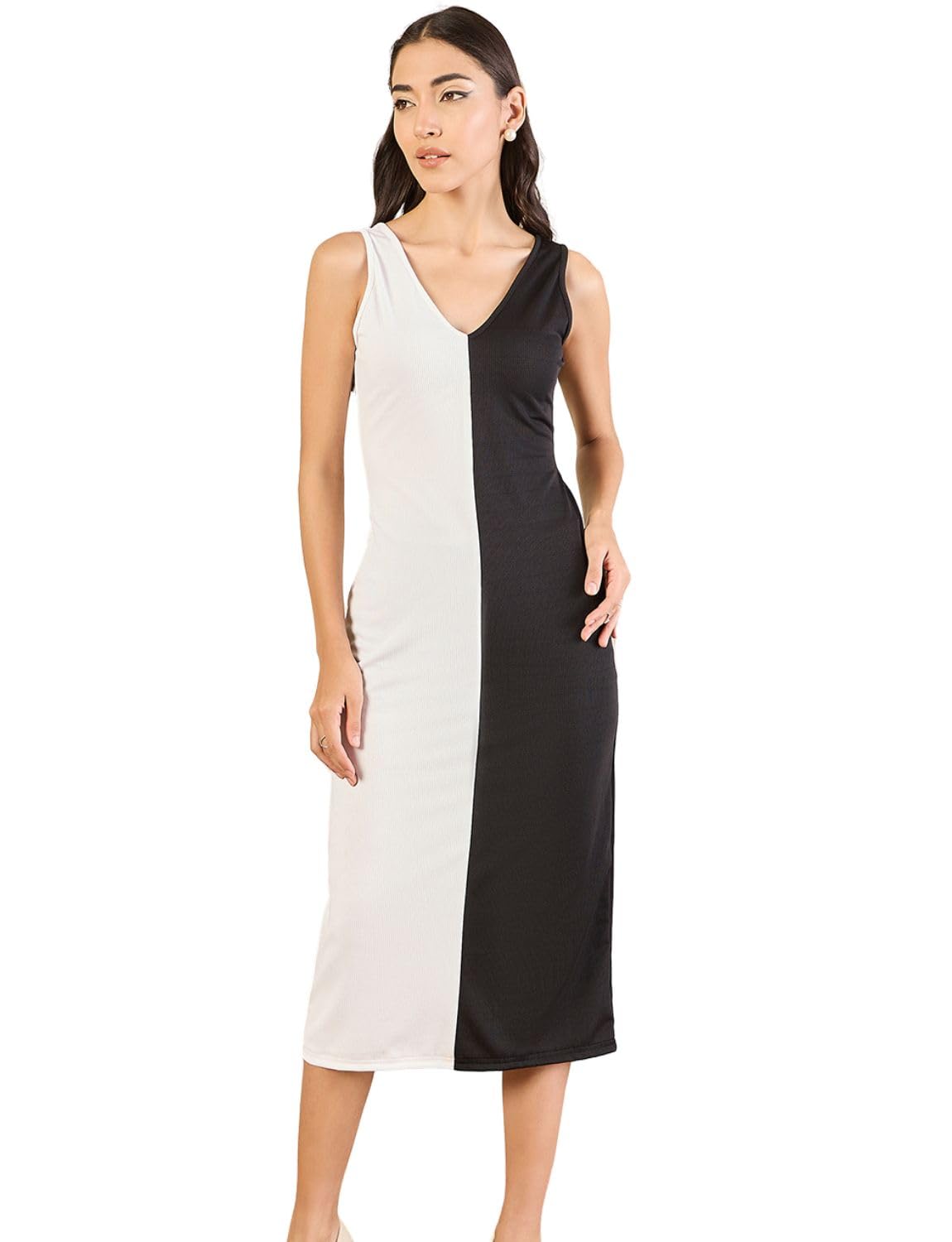 Uptownie Lite Women Stretchable Dual Tone Bodycon Midi Dress by Prixsa.com