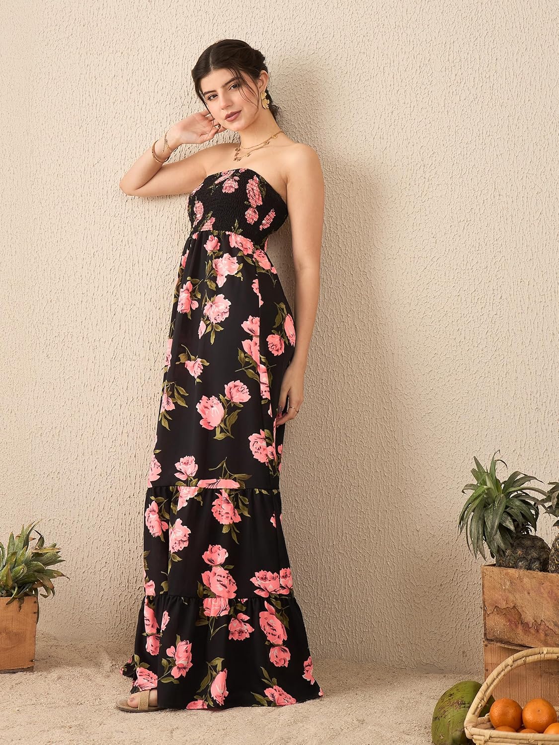 Uptownie Off Shoulder Smocked Maxi Dress by Prixsa.com