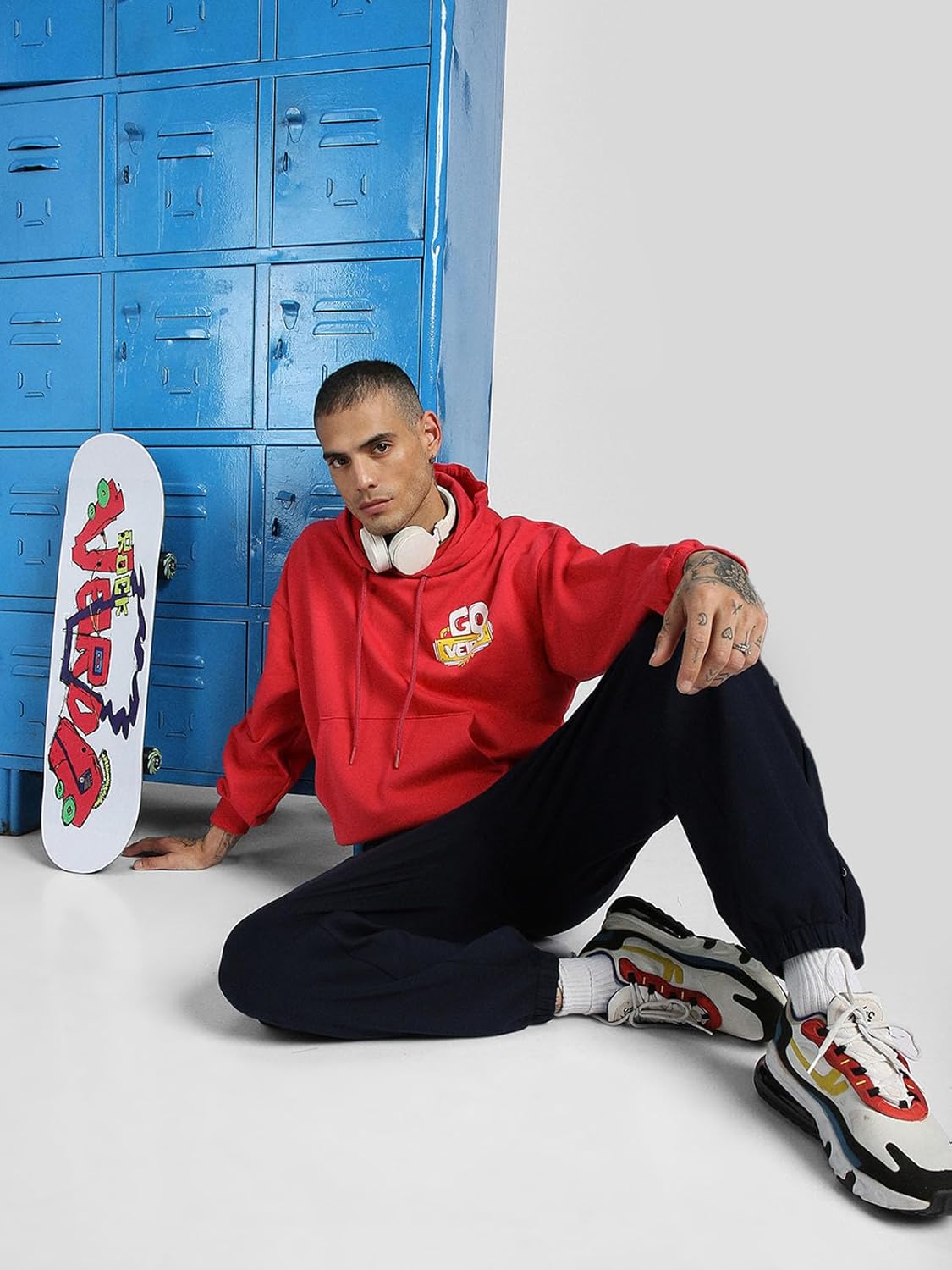 Veirdo® Cotton Poly Fleece Oversized Hooded Sweatshirt Baggy Fit Stylish Pocket Graphic Printed Hoodie for Men (Available in Sizes: S to 3XL) by Prixsa.com